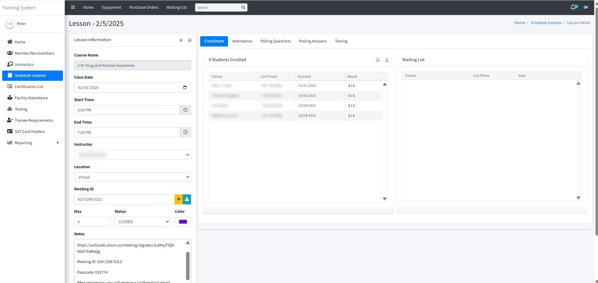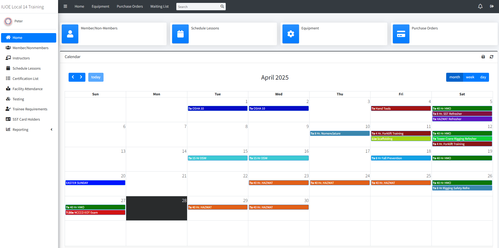 A training system that allows labor unions to create, schedule, and manage lessons for their upcoming DOB approved courses. This includes enrolling members, assigning instructors and tracking worker attendance. For virtual classes, it integrates with Zoom API to pull in attendance, testing and polling questions to track user participation. Administrators can view worker profiles and print SST (Site Safety Training) cards, along with tracking certifications to log renewal and expiry dates to determine if further training is required.